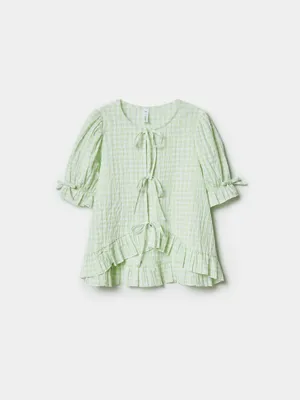 Укороченная рубашка SELA для девочек из смесового льна, разноцветный, арт. 50571