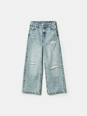 Джинсы Sela рваные широкие, голубой, арт. 39063