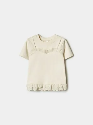Топ Sela для девочек с вышивкой и кружевными оборками, бежевый, арт. 39042