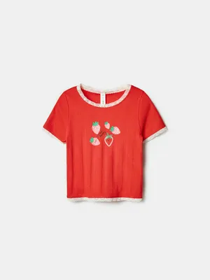 Футболка SELA с принтом и кружевом, красный, арт. 41394