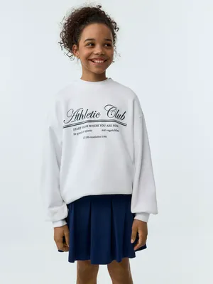 Свитшот оверсайз SELA с принтом для девочек, белый, арт. 42566