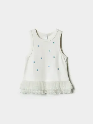 Топ Sela для девочек с вышивкой и кружевными оборками, бежевый, арт. 39042