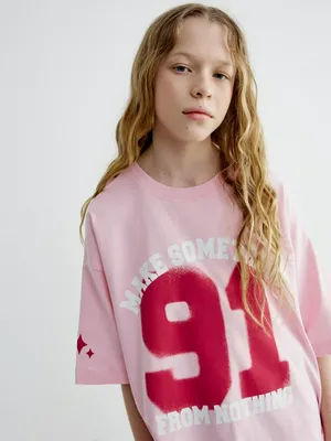Футболка оверсайз Sela с принтом, розовый, арт. 40575