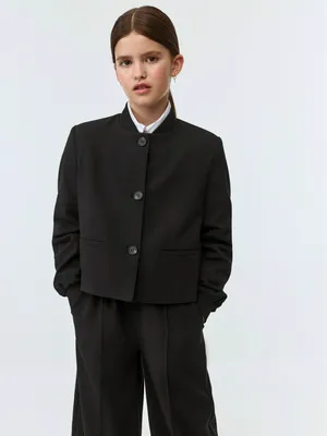 Жакет Sela укороченный с низким воротником для девочек, черный, арт. 43487