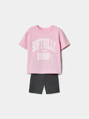 Комплект из футболки и шорт SELA для девочек, розовый, арт. 43962