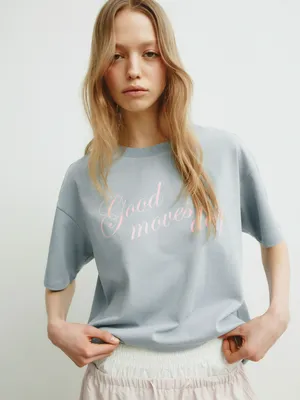 Футболка SELA Young с текстовым принтом, голубой, арт. 39068
