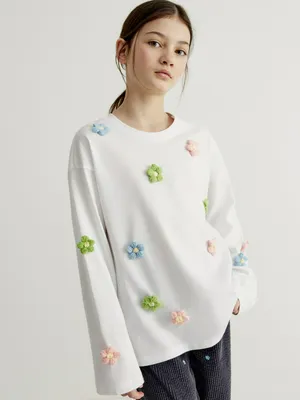 Лонгслив оверсайз Sela с аппликацией, белый, арт. 40793