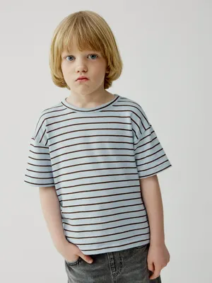 Футболка SELA оверсайз в полоску для мальчиков, голубой, арт. 45076