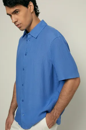 Мужская льняная рубашка Finn Flare с коротким рукавом, 180 blue aster, арт. FSF21035
