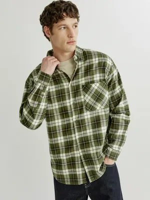 Фланелевая рубашка в клетку Sela, зеленый, арт. 43778