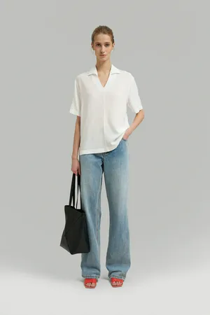 Блузка FINN FLARE свободная с V-вырезом, белый, арт. FSG11069