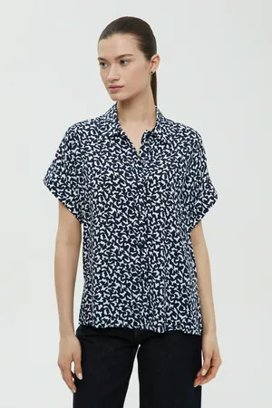 Рубашка женская FINN FLARE с принтом, 101 mc cosmic blue, арт. FSE11009