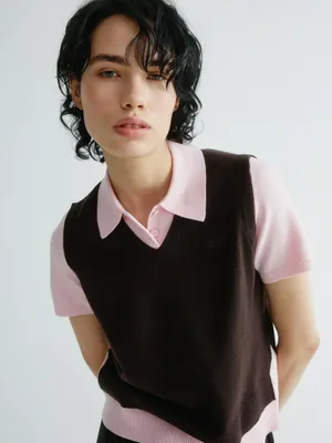 Джемпер-поло с имитацией жилетки, арт. 32011