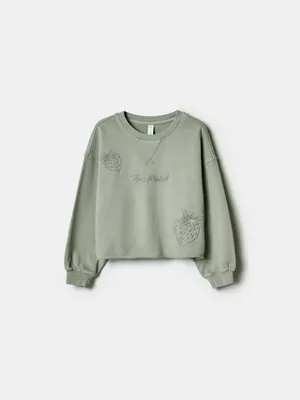 Sela Укороченный свитшот с вышивкой для девочек, хаки, арт. 41679