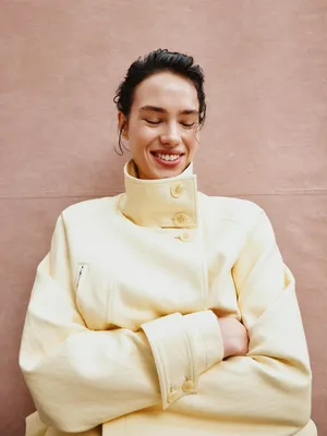 Куртка SELA оверсайз из экокожи с высоким воротником, желтый, арт. 40553