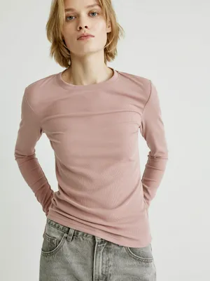 Тонкий лонгслив с содержанием шерсти, розовый, арт. 31056