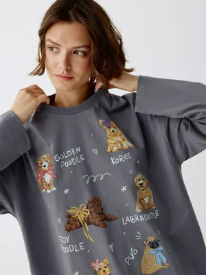 Лонгслив оверсайз с принтом и вышивкой, арт. 4062