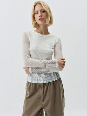 Лонгслив из сетки Sela с принтом, белый, арт. 43483