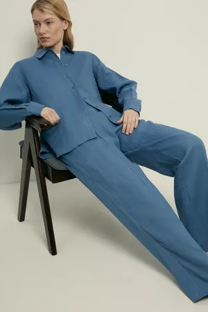 Льняные брюки широкого силуэта Finn Flare, 110 delta blue, арт. FSF11043