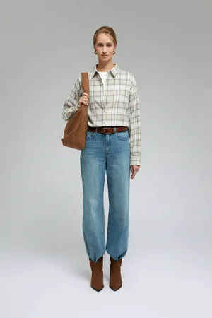 Рубашка Finn Flare из хлопковой фланели в клетку, бежевый, арт. FAF110103