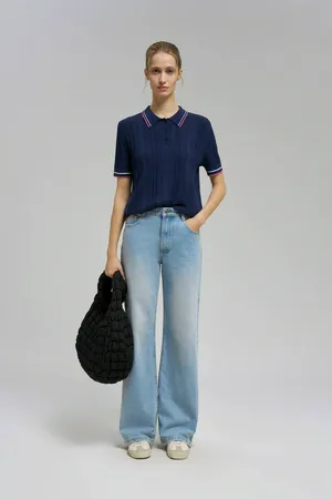 Джемпер FINN FLARE с коротким рукавом и воротником-стойкой, синий, арт. BAS-100179