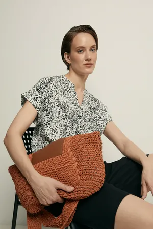 Блузка Finn Flare с коротким рукавом из тенселя, черный, арт. FSF110180