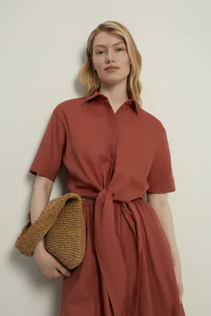 Блузка FINN FLARE из хлопка и льна с завязками на поясе, 354 mineral red, арт. FSE110210