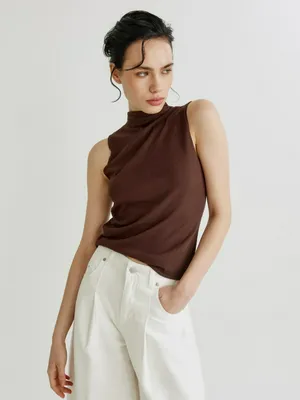 Вязаный топ с высокой горловиной Sela, коричневый, арт. 40783