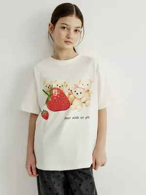Футболка SELA с принтом клубника, бежевый, арт. 40741