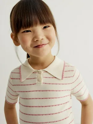 Вязаное поло Sela для девочек с коротким рукавом, разноцветный, арт. 50682