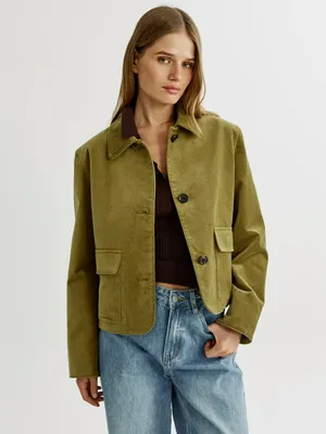 Куртка Sela короткая бархатная из хлопка, хаки, арт. 49736