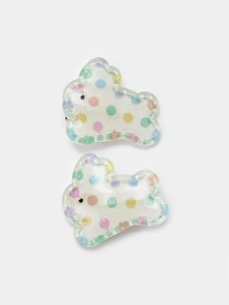 Каждая заколка выполнена из качественного и безопасного синтетического материала, что гарантирует долговечность и комфорт в ношении. Прозрачная основа с игривыми разноцветными горошками придает им особый шарм, делая каждую прическу яркой и запоминающейся. В комплекте вы найдете две одинаковые заколки, идеально подходящие для создания как симметричных, так и асимметричных причесок.