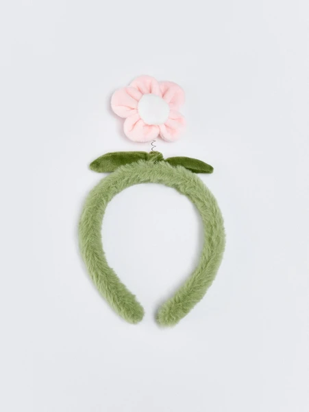 Главная особенность ободка — это очаровательный плюшевый цветок розового цвета, закрепленный на пружинке. Он нежно колышется при каждом движении, создавая веселый и динамичный акцент. Ободок выполнен в приятном мятном цвете, который гармонично сочетается с розовым цветком. Это не просто аксессуар, это способ выразить индивидуальность и поднять настроение!