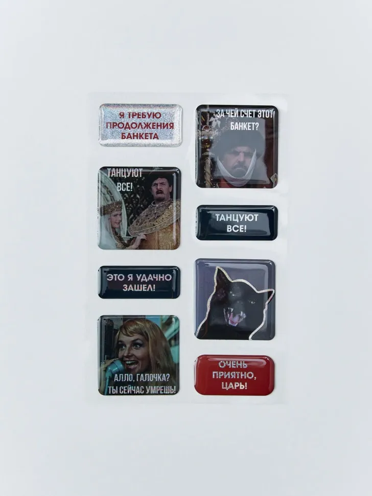 Представляем уникальную коллекцию 3D наклеек на телефон SELA x Мосфильм – идеальный аксессуар для ценителей советской киноклассики и ярких акцентов в повседневности! Эти стикеры созданы в коллаборации с легендарной киностудией Мосфильм и брендом SELA, чтобы подарить вам возможность всегда иметь под рукой культовые фразы и образы из любимых фильмов. От знаменитых цитат, таких как "За чей счет этот банкет?" и "Это я удачно зашел!", до харизматичных персонажей – каждая наклейка наполнена юмором и ностальгией.
