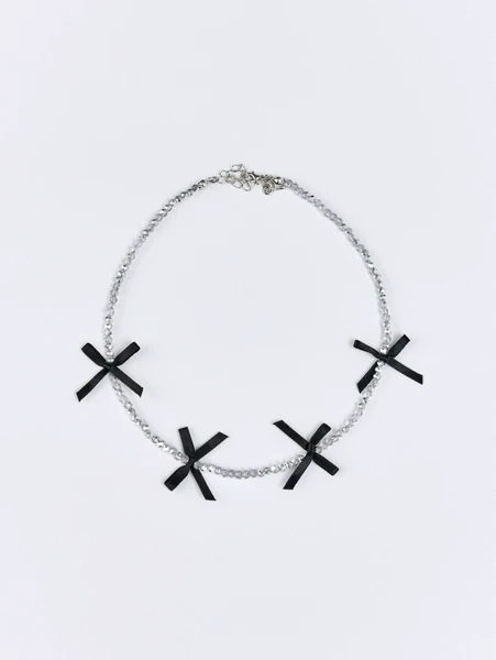 - Элегантный дизайн: Серебристая цепочка с блестящими элементами и аккуратными черными бантиками.