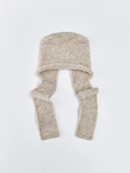 Изделие выполнено в нежном светло-бежевом цвете, который легко сочетается с различной верхней одеждой. Мягкий и приятный на ощупь материал дарит ощущение уюта, а продуманный крой "два в одном" надежно защищает голову и шею от ветра и мороза. Забавные ушки добавляют игривости образу, делая эту шапку-шарф любимым элементом зимнего гардероба вашей дочки. Пусть каждая прогулка будет наполнена радостью и теплом с Sela!
