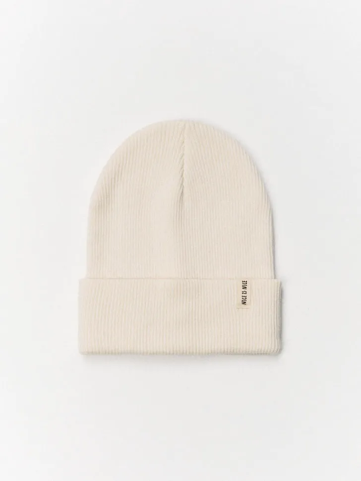 ШапкиПредставляем идеальный аксессуар для юных модниц — стильную трикотажную шапку молочного цвета! Эта модель не только согреет в прохладную погоду, но и станет ярким акцентом в повседневном образе вашей девочки. Шапка выполнена из мягкого и приятного к телу трикотажа в рубчик, обеспечивая максимальный комфорт и уют. Особое очарование ей придает текстильный патч с жизнеутверждающей надписью «NICE IS NICE» — это не просто деталь, а напоминание о том, как важно быть добрым и позитивным каждый день.