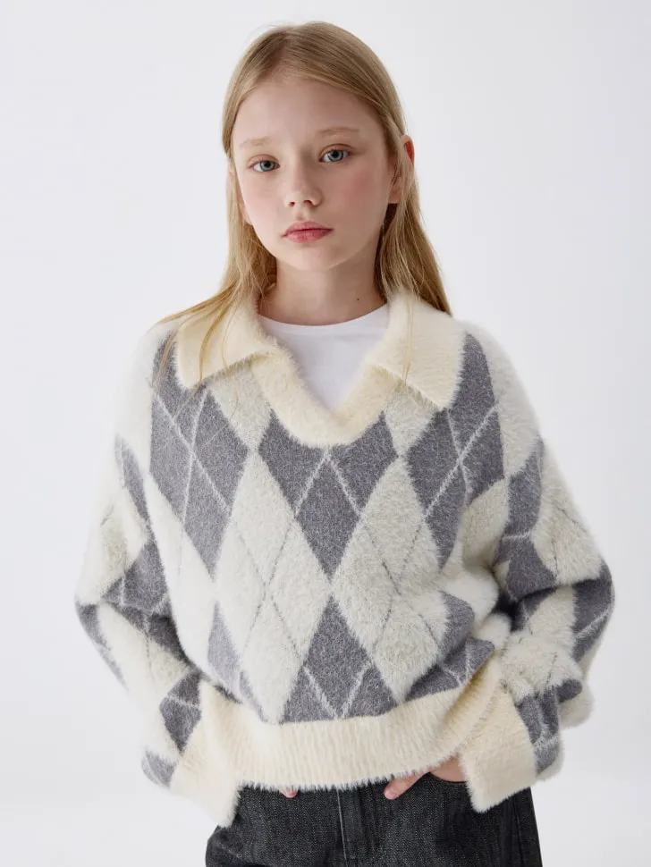 Вязаный джемпер с воротником поло для девочек, арт. 5701