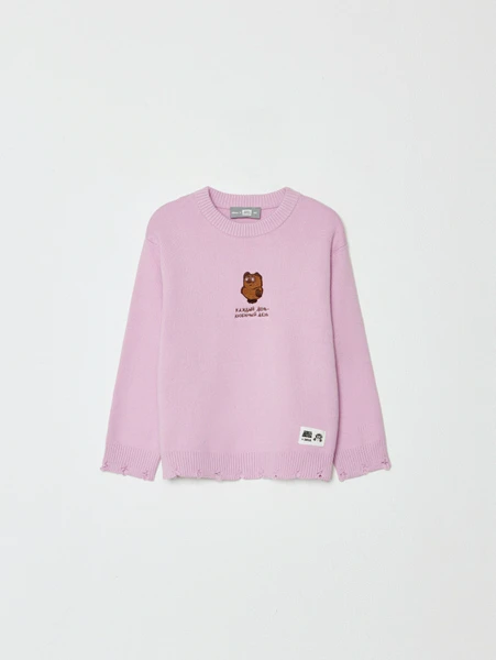 Вязаный джемпер SELA x Союзмультфильм для девочек, фиолетовый, арт. 33757