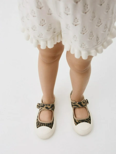 Каждая пара создана с учетом потребностей детской стопы: легкие материалы обеспечивают свободу движений, а удобная застежка надежно фиксирует обувь на ноге, предотвращая скольжение и дискомфорт. Яркий леопардовый принт не оставит равнодушной ни одну маленькую модницу, а белый мысок добавляет свежести и практичности.