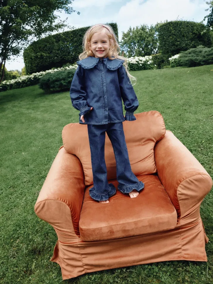 Джинсовая блузка с нарядным воротником для девочек, арт. 3922