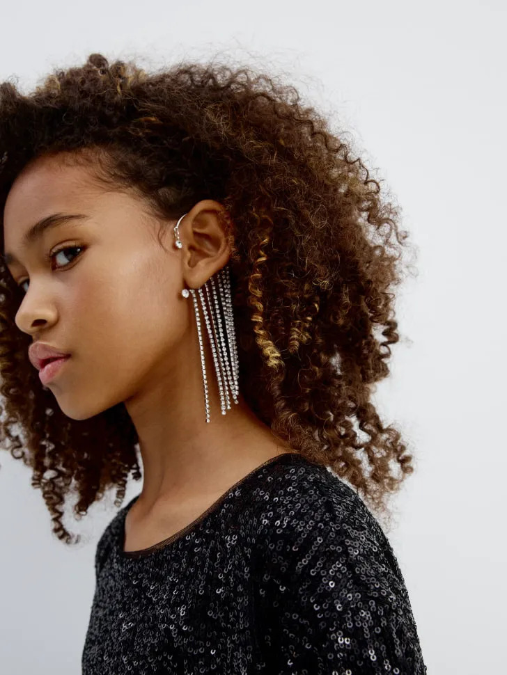 Представляем изысканный кафф со стразами, созданный специально для юных модниц! Этот аксессуар станет идеальным дополнением к любому праздничному или повседневному образу, придавая ему неповторимый шарм и блеск. Дизайн каффа разработан с учетом комфорта и безопасности: он легко крепится на ушную раковину, не требуя прокола, что делает его отличным выбором для девочек. Сотни сверкающих страз искусно инкрустированы, создавая эффект водопада света, который будет приковывать взгляды окружающих.