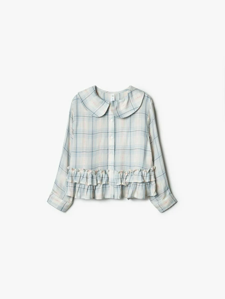 Созданная для комфорта и красоты, блузка выполнена из мягкого, дышащего хлопка, который приятен к телу и обеспечивает свободу движений в течение всего дня. Нежный дизайн в клетку, сочетающий светло-голубой, белый и розовый оттенки, создает легкий и воздушный образ. Очаровательный округлый воротничок и изящные двухъярусные рюши по низу изделия придают блузке праздничный и нарядный вид.