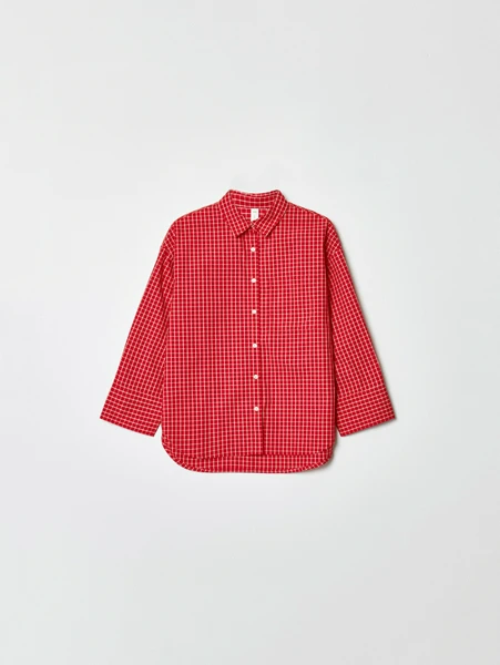 Рубашка оверсайз SELA в клетку для девочек, красный, арт. 35805