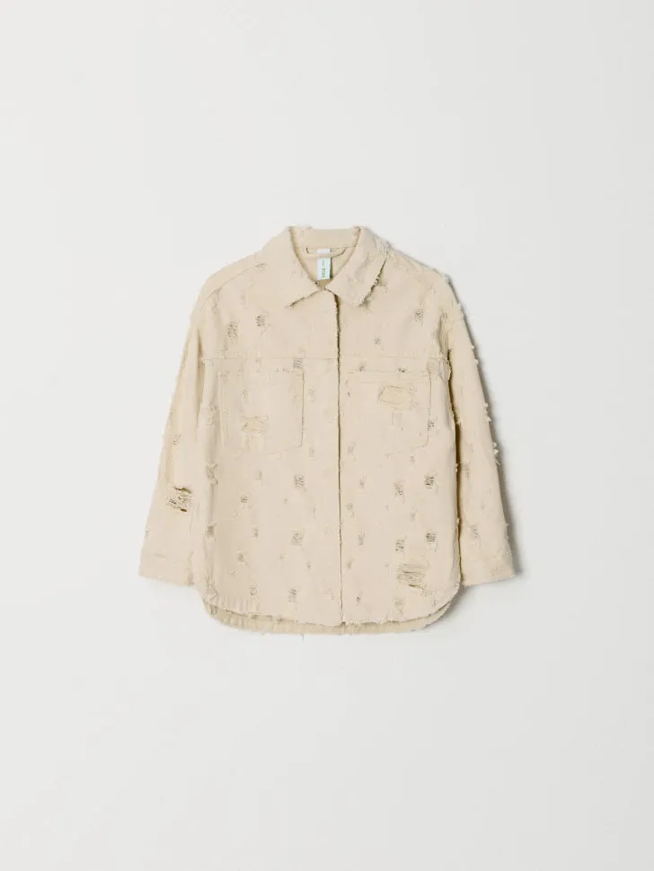 Рваная джинсовая рубашка оверсайз для девочек, арт. 5314