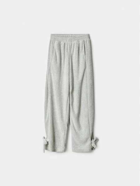 Изготовленные из мягкого хлопкового материала, они обеспечивают непревзойденный комфорт и позволяют коже дышать, что особенно важно для детской одежды. Светло-серый меланжевый оттенок легко комбинируется с другими элементами гардероба, открывая простор для создания уникальных образов. Эластичный пояс гарантирует идеальную посадку, а оригинальные завязки по бокам штанин придают модели особый шарм и игривость. Эти брюки прекрасно подойдут для: