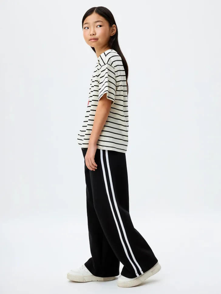 Широкие трикотажные брюки с лампасами для девочек, арт. 12012