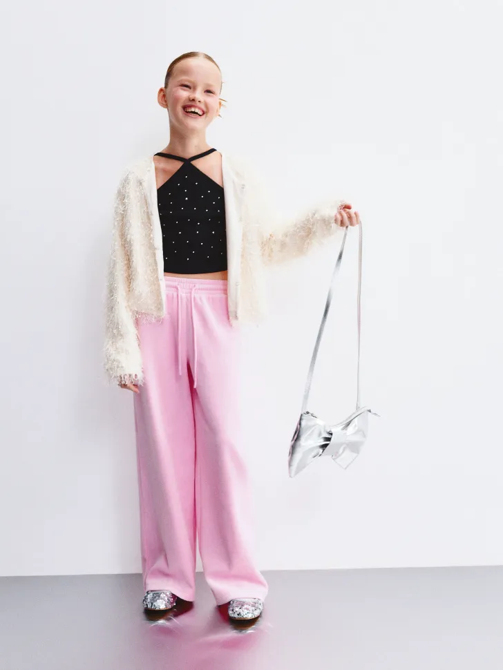 Модель с широкими штанинами и эластичным поясом гарантирует свободу движений и идеальную посадку, не сковывая активности ребенка. Легко комбинируются с различными элементами гардероба: от спортивных худи до элегантных блузок, позволяя создавать множество стильных и комфортных образов. Выбирая эти велюровые брюки, вы дарите своей дочке не просто одежду, а уверенность и комфорт в каждом её шаге!