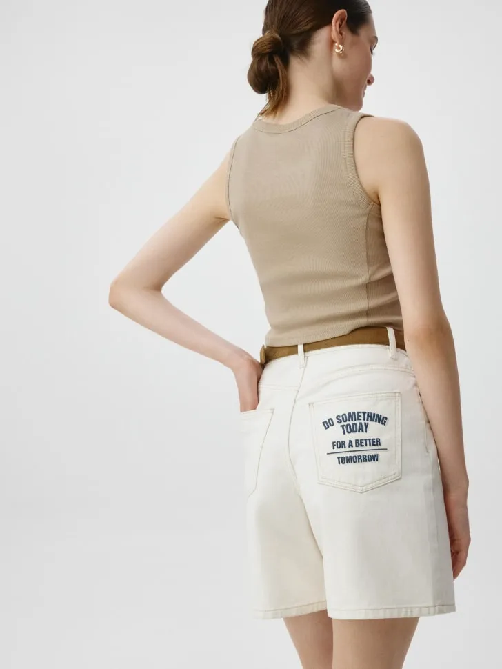 Джинсовые шорты Mom fit с принтом, бежевый, арт. 6639