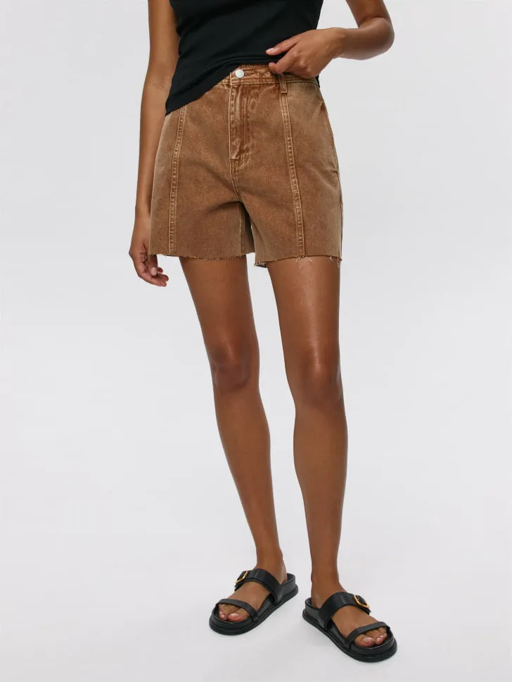 Джинсовые шорты с рельефными швами, коричневый, арт. DS-001
